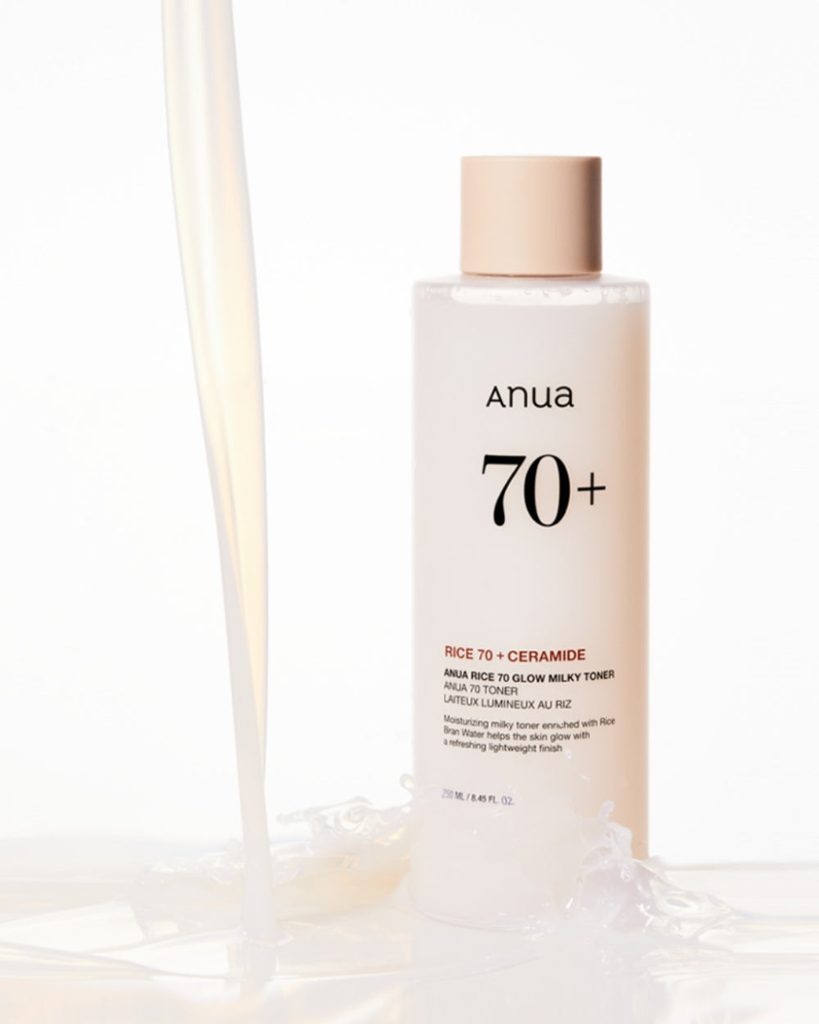 Rozjasňující pleťový toner s vysokým podílem rýžové vody (70 %) a ceramidů.